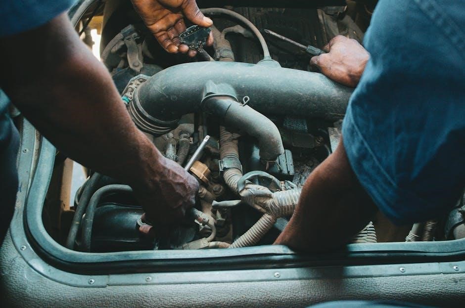 The manual provides in-depth coverage of fluid level checks, filter replacements, and troubleshooting common issues like slipping gears or harsh shifting. For manual transmission owners, the PDF offers guidance on clutch adjustments, synchronizer mesh issues, and gear linkage repairs. Detailed exploded views and torque specifications ensure accurate and safe repairs, maximizing the longevity of your Corolla’s drivetrain.